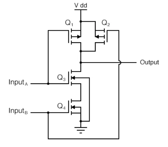 With field effect transistors, we can use together n-channel and P-channel MOSFETs to create simple logic gates.