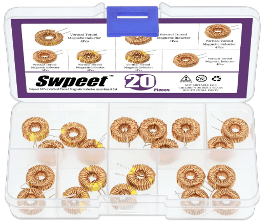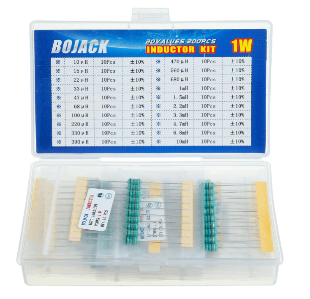 Begin with a must-have assortment. Don’t start buying individual values. Go to Amazon or eBay and look for an Axial Inductor Assortment Kit.