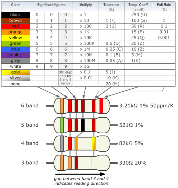 For example, the axial inductor from above has yellow, blue, black, and silver, which means 46 microhenry, and a tolerance of 10%.