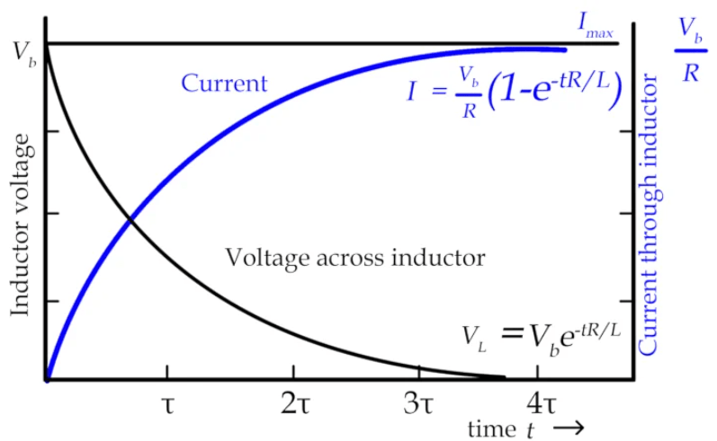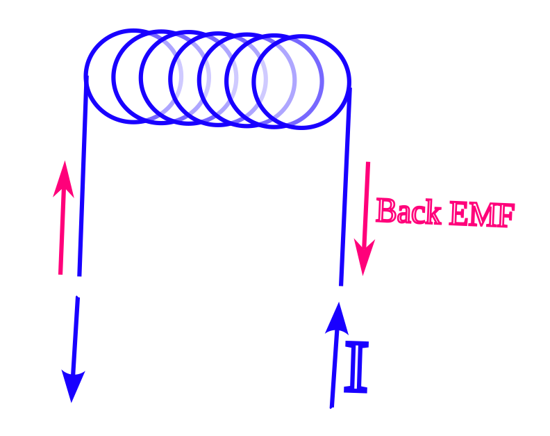When we try to increase the current through an inductor, the magnetic field has to expand. But the expansion actually pushes back against the incoming current. We call this Back EMF, or Back Electromotive force. It’s basically like trying to push a heavy car: it takes a lot of effort just to get it rolling.