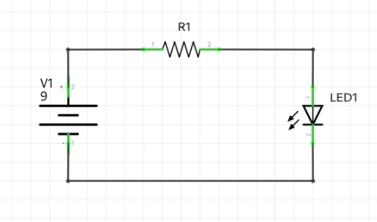 Let’s say we have a 9V battery, a resistor, and a LED. Knowing that the current that must flow through the LED is 20mA, and that the voltage at the LED is 2V, what’s value of resistor we have to put in series to the LED to limit the current to the 20mA value?